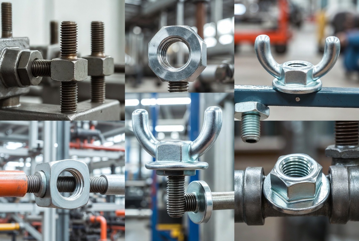 انواع مهره صنعتی هر کدام برای شرایط خاصی طراحی شدهاند. مهره ششگوش برای کاربرد عمومی، مهره قفلی برای جلوگیری از شل شدن، مهره فلنجدار برای توزیع نیرو و مهره بلند برای اتصال میلرزوه استفاده میشود.